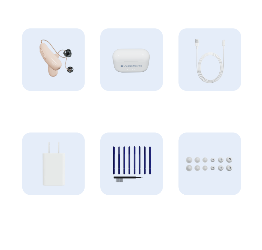 Place your hearing aids in the case until charged, then pair them with the Audien App.